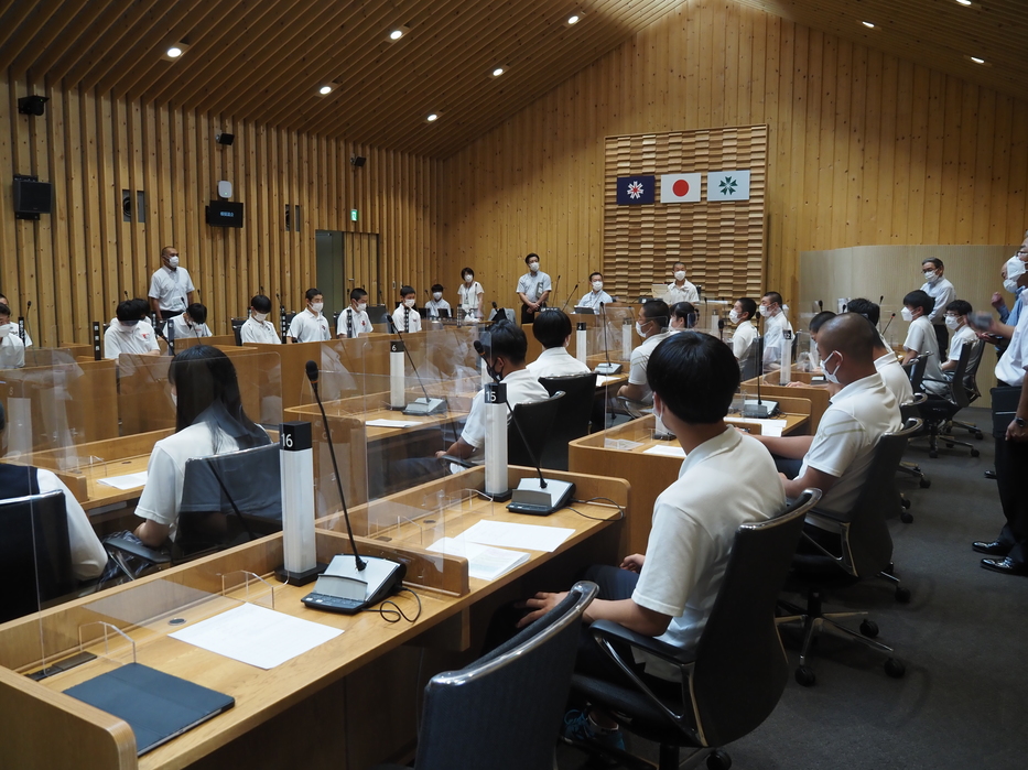 高校生がたくさん。白樺学園高校、模擬議会体験。清水高校、インターンシップ2日目。(2022年7月21日)![]()