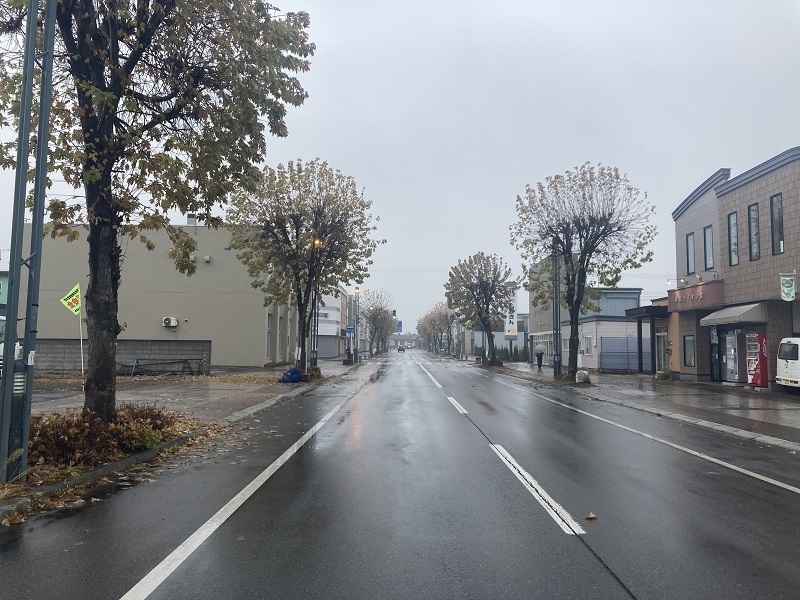 本日の芽室町は肌寒い雨の朝となりました。朝8時過ぎに撮影した写真ですが、なんだか薄暗い中、まだ街路灯もついていて、夕方のような感じです。