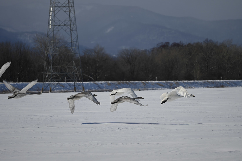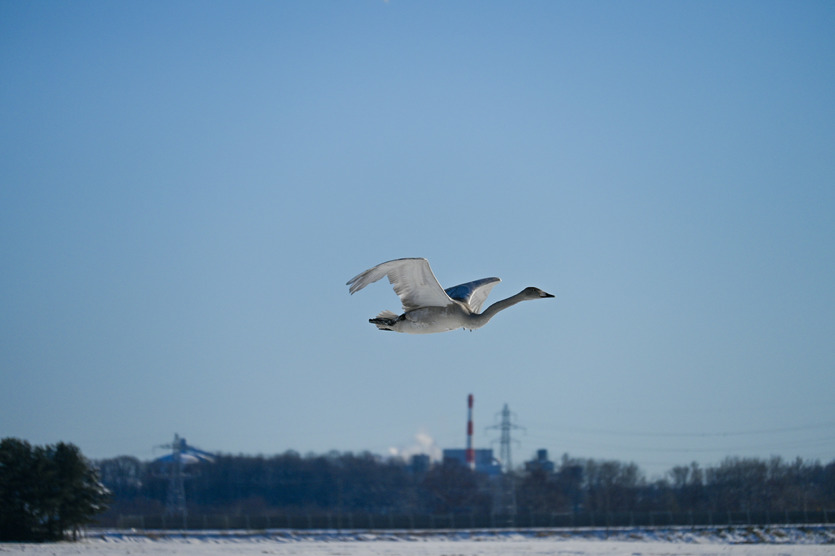 今日は北芽室北で撮影した写真です。ハクチョウの飛来地といえば帯広市の十勝川公園付近が有名ですが、芽室町にも何カ所か、このようにハクチョウがやってくる場所があります。今日は今季最低気温を記録したこともあり、心なしかハクチョウ達も寒そうでした。
