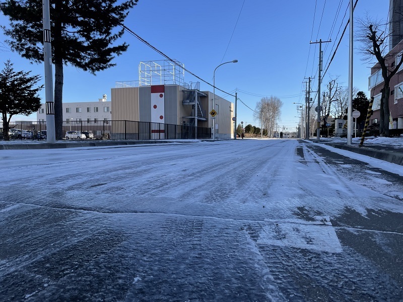 道路も凍結していて、運転には十分に注意が必要な路面状況です。安全運転で事故のないように気を付けてください。