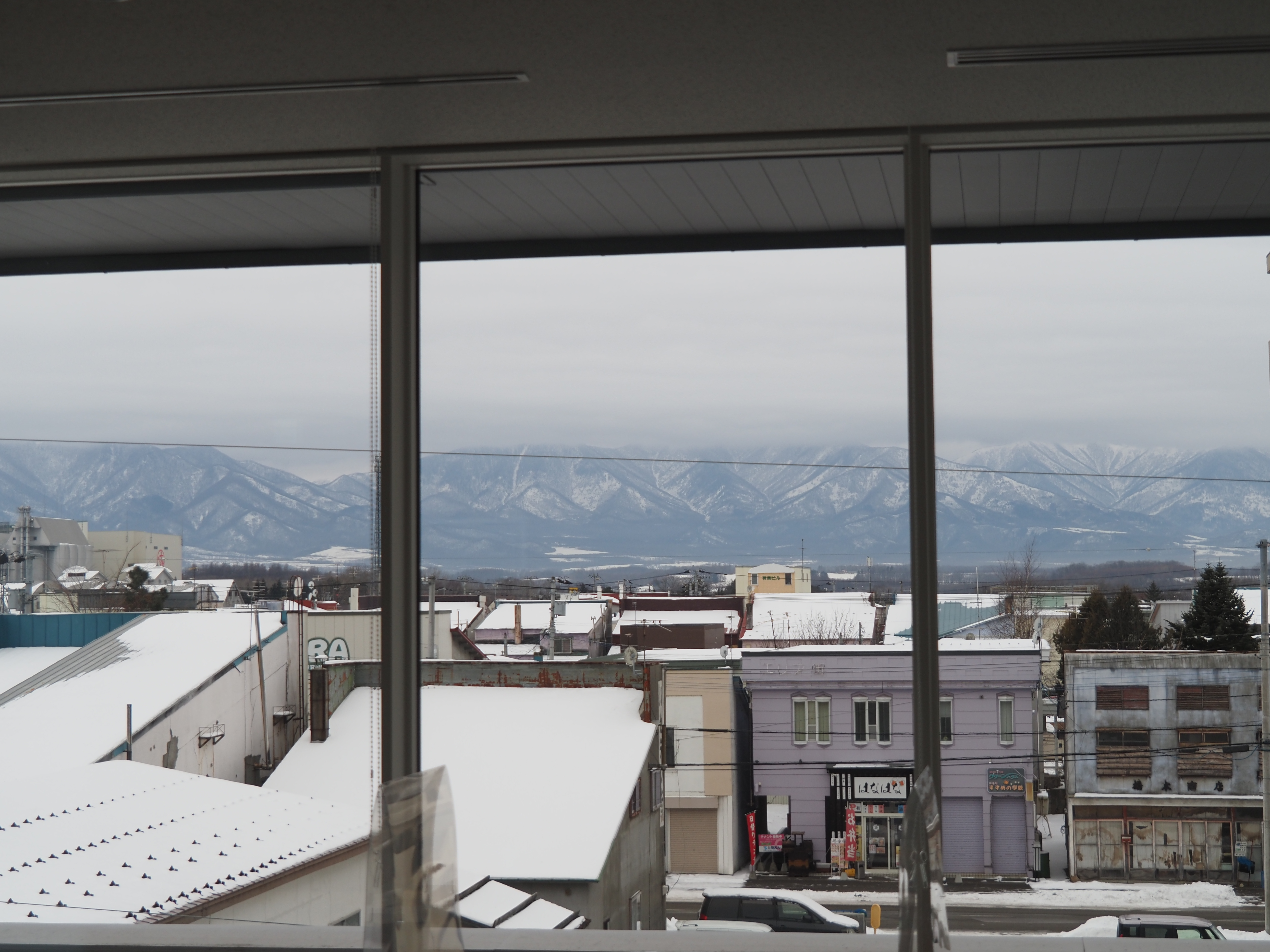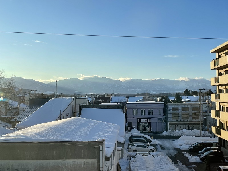 今日は役場庁舎3階で撮影した写真です。12月初旬から一段と気温も下がり、庁舎3階の窓から見える景色も白色が多くなってきました。