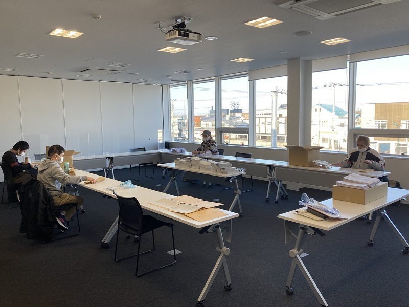 今日は、町民に送付するアンケートの封詰め作業。