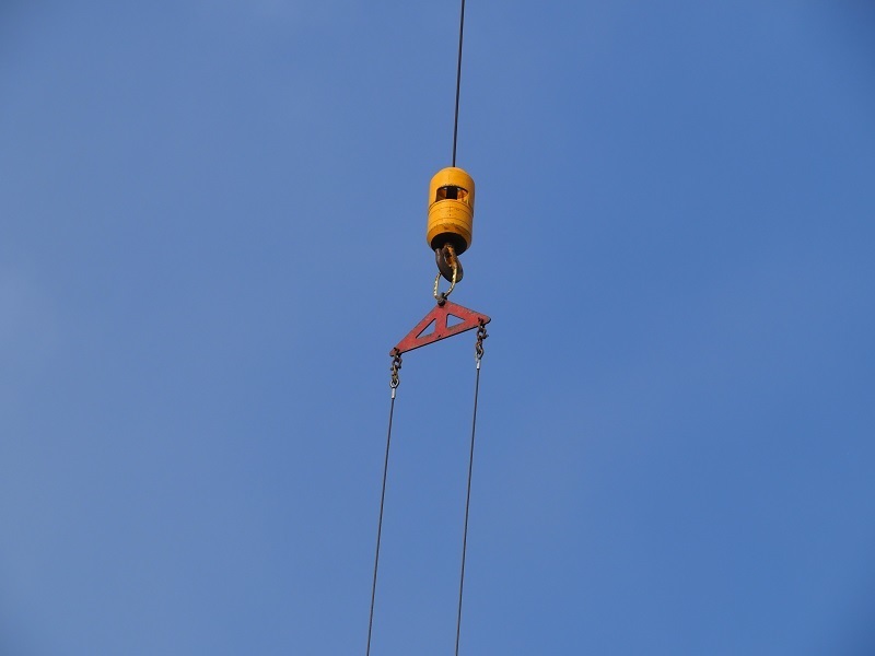 柱を立てていくため、今回のプール工事では非常に大きなクレーン車が使われています。
