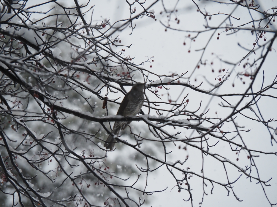雪の朝を迎えました。今朝の最低気温はマイナス0.1℃、日中の最高気温は5℃の予報です。