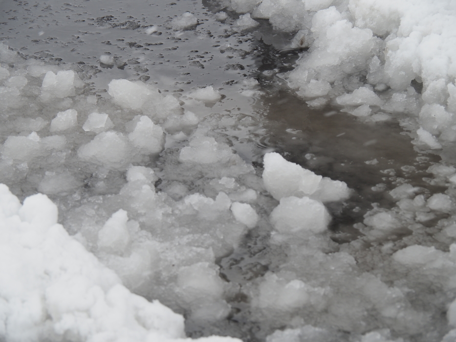 加えて、一気に下がった気温の影響で、陰になるような日の当たらない路面はこのようにツルツルのところが一部あります。