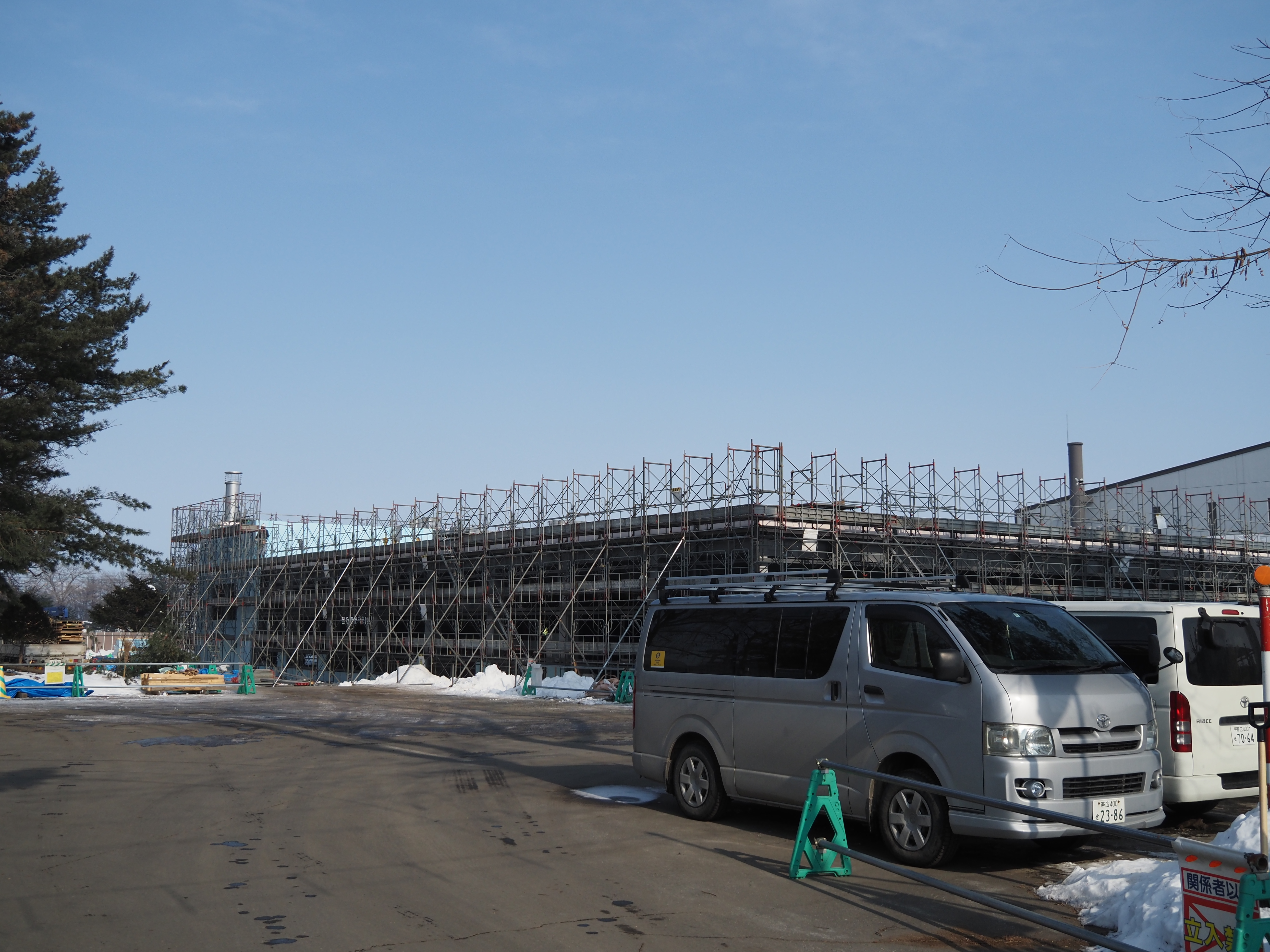 今日は温水プール建設地で撮影した一枚です。初夏の供用に向け、着々と建設が進んでいます。先日は地上部分に着工したばかりでしたが、かなり建物の作業が進んでいることが分かります。