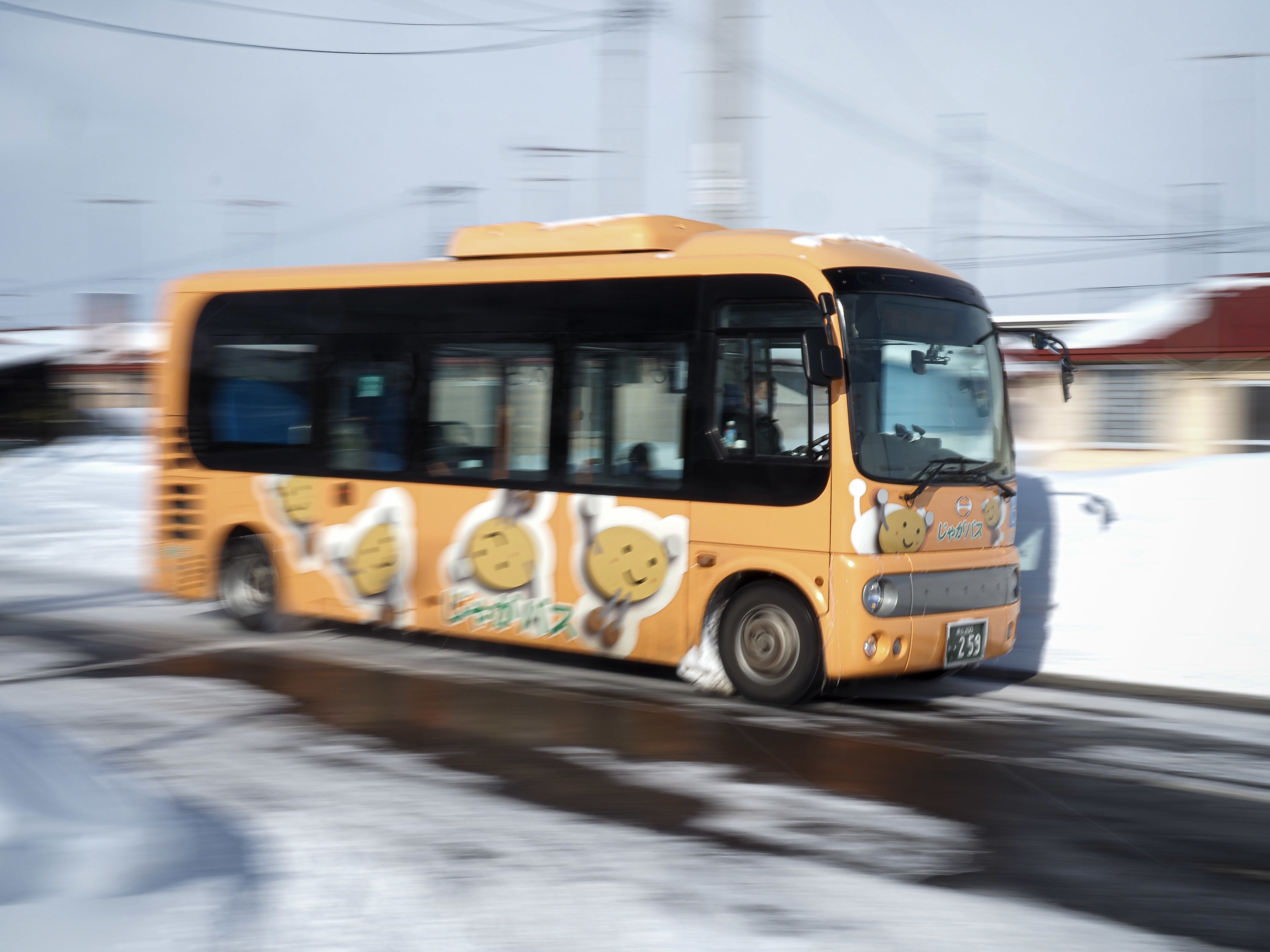 今日は健康プラザ前で撮影した一枚です。芽室町内では、市街地をコミュニティバス『じゃがバス』が巡回しています。1日5便出ており、停留所の数も豊富です。写真撮影時にも、停留所で乗降している地域の方の姿が見られました。