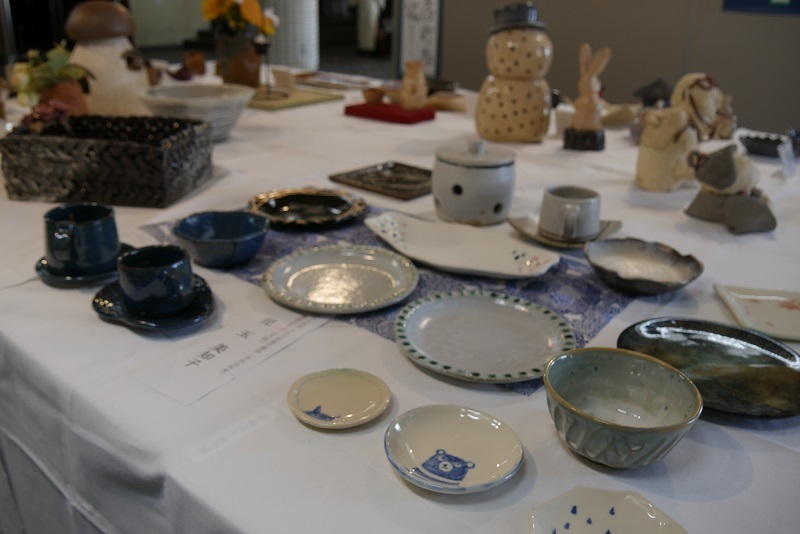 1階ロビーでは作品展があり、書道、手芸、陶芸、絵画や写真など、どれもとても素敵な作品を見ることができます。