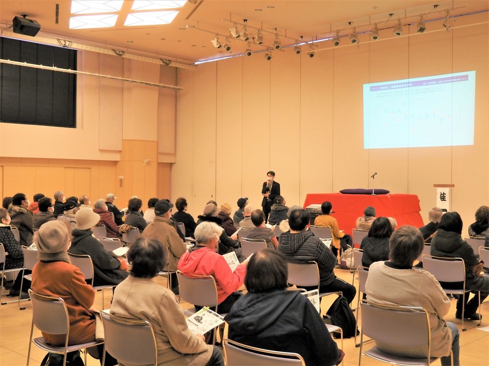 今日はめむろーど2階セミナーホールで撮影した一枚です。今日はここで地域公共交通活性化協議会が主催するイベントが行われていました。役場職員による交通に関するミニ講座の後、芽室高校出身の桂三段さんによる落語があり、訪れた皆さんは笑顔で楽しまれていました。このように、みなさんが集まって笑顔になるようなイベントごとが復活していくと嬉しいですね。