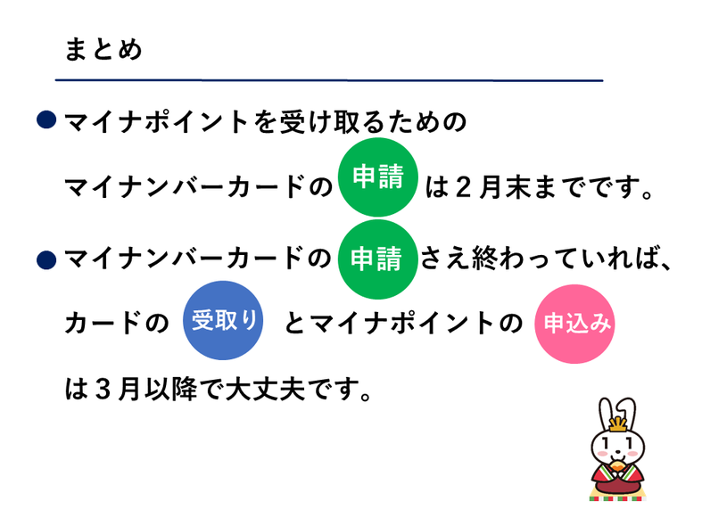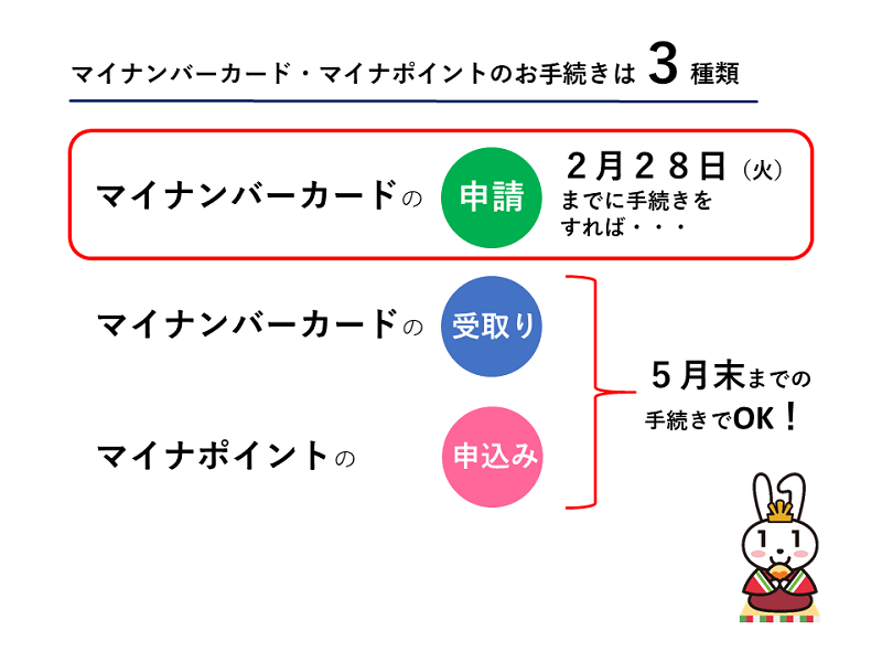 2月末までを期限としているのは、あくまでも「マイナポイントを受け取るためのマイナンバーカードの申請」です。