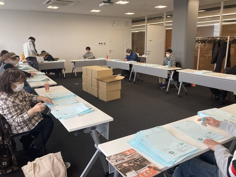 就労支援事業として、今回も障がいをお持ちの方たちに、農村部用の発送に係る作業を行っていただいています。