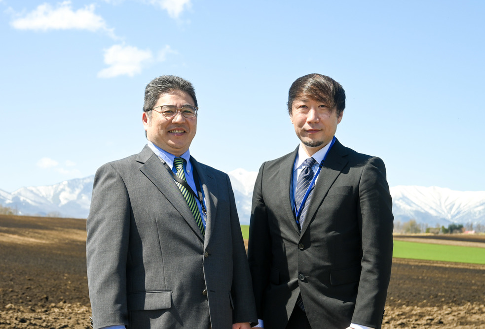 今日は上芽室方面で撮影した一枚です。お二人は今年度から新たに役場に着任した方で、写真左が地域活性化起業人の麓 紀久(ふもと のりひさ)さん、右が地域おこし協力隊の宮本 昌武(みやもと まさたけ)さんです。麓さんは芽室の”農”や”食”といったコンテンツを中心に、宮本さんは日高山脈の景観やアクティビティを軸に、芽室町の新たな魅力を創出するミッションに取り組んでいただきます。