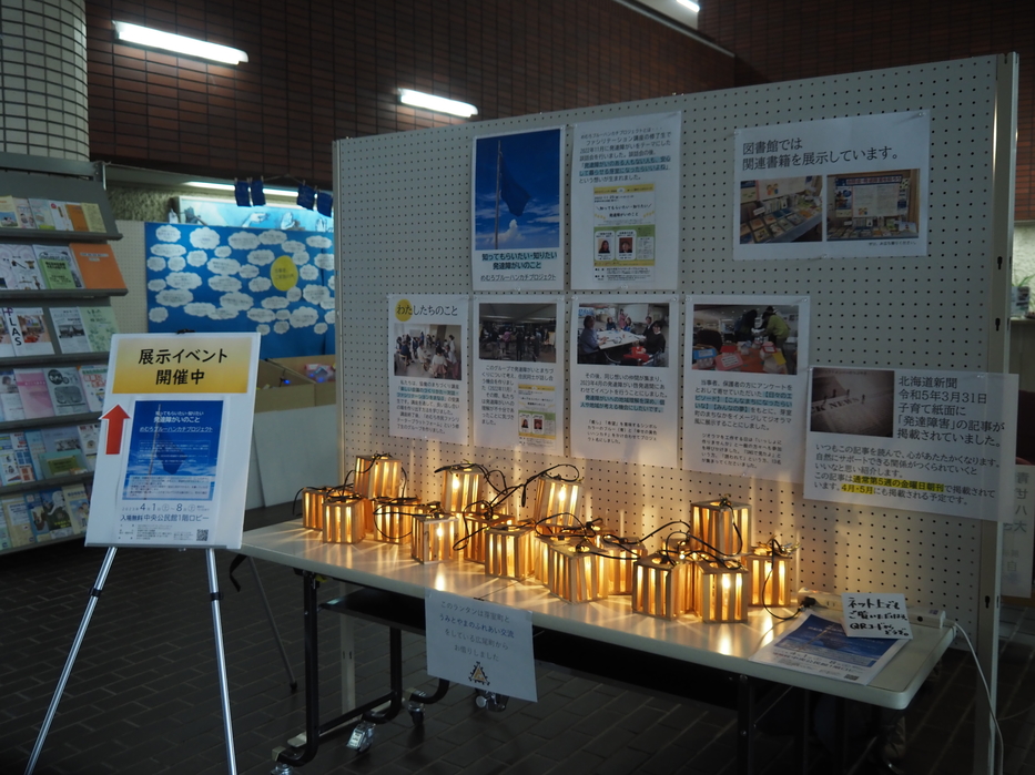 展示期間は「発達障害啓発週間」に合わせ、週末8日(土)まで。選挙の期日前投票などでお立ち寄りの際は、ぜひお立ち寄りください。