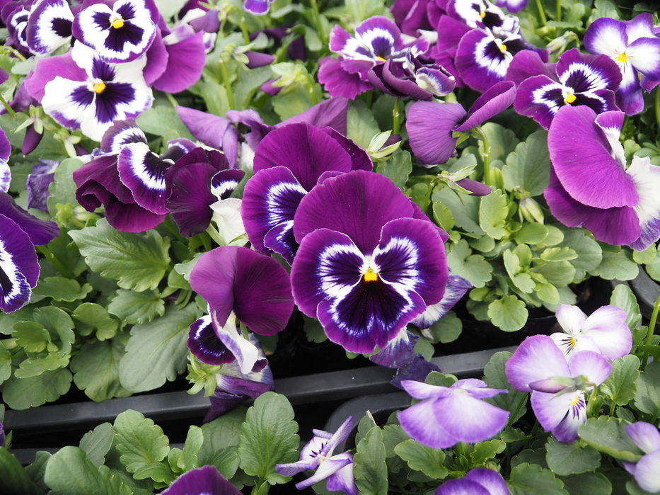 日に日に暖かくなり、春の息吹を感じて桜の開花を心待ちにしている今日この頃ですが、こちらのハウス内では、色とりどりのパンジーが満開でした。