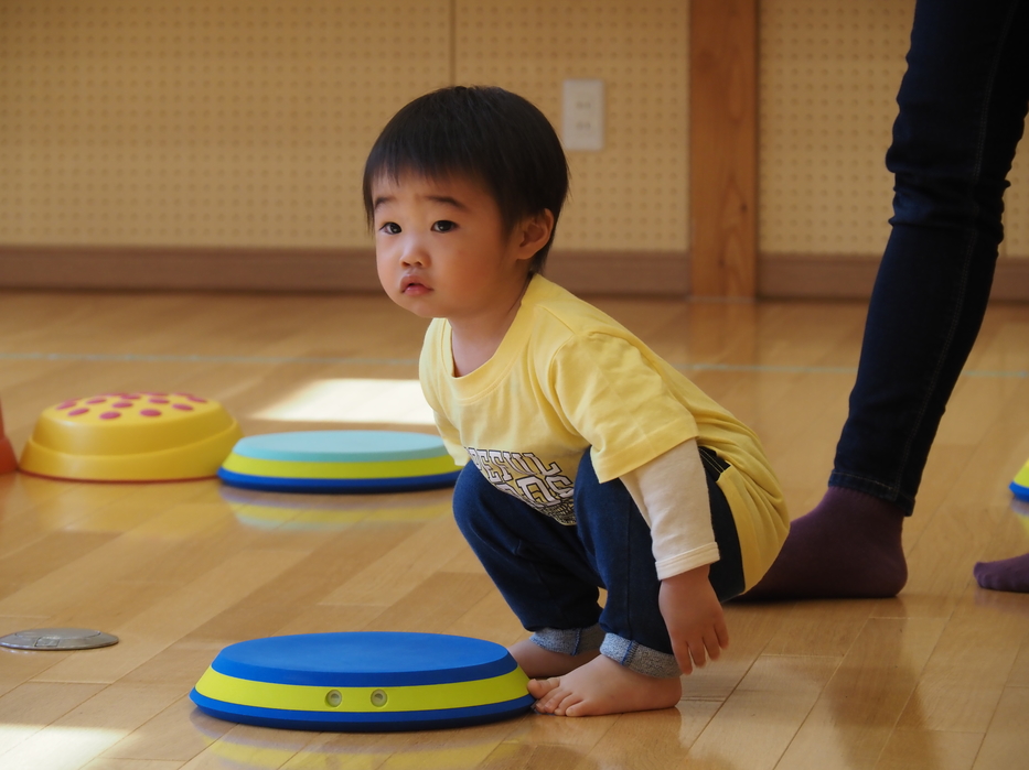会場の広いホールには体を動かして遊べるたくさんのおもちゃがあるほか、今日から導入したトランポリンもあり、家庭ではなかなかできない遊びができて子どもたちはみんな楽しそうでした。