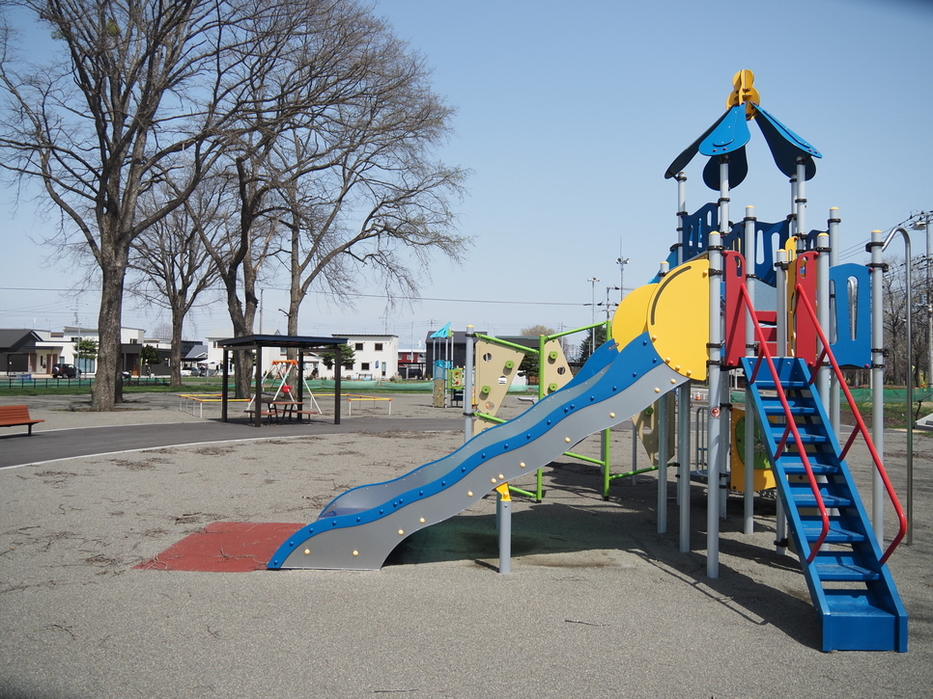 たくさんの遊具があるほか、ゆっくり過ごせるよう、あずまや、ベンチもあります。