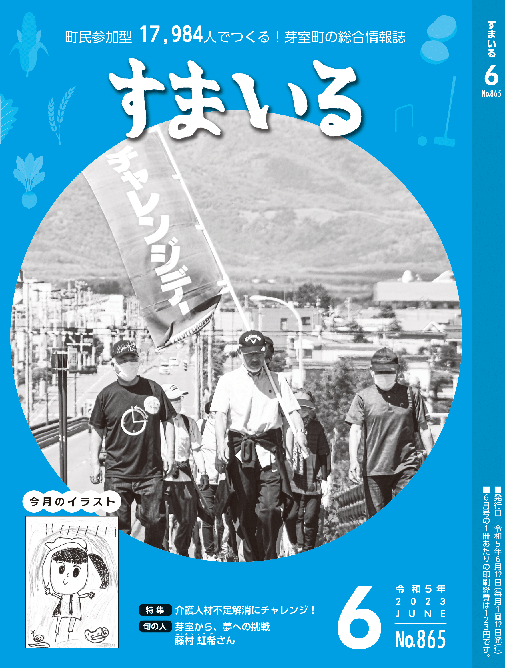 今日は広報『すまいる』6月号の発行日です。今月の特集では、学生カイゴチャレンジ事業(カイチャレ)を通じて町内で働く方々を取材しました。また、7月からオープンする新しい温水プールの情報も掲載しています。