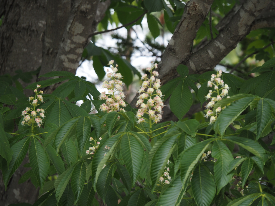 今日は中央公民館駐車場で撮影した写真です。遠くからでも目立つ花が咲いており、おそらくトチの木と思われます。「贅沢」「豪奢」「健康」といった花言葉があり、多くの葉や実をつける生命力からも、縁起の良い木とされています。実はアクが強くそのまま食べるのには不適とされますが、大昔は主食や貴重な備蓄食料として重宝されたようです。