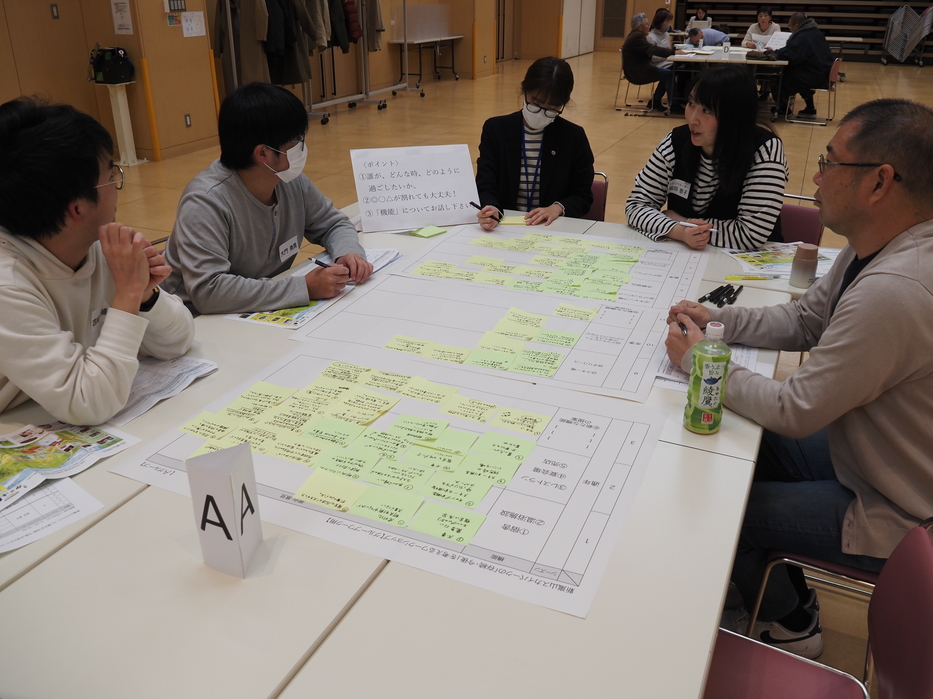 ワークショップには17名の方に参加いただき、「誰が、どんな時、どのように過ごしたいか」をポイントに新嵐山スカイパークにある機能の必要性について議論いただき、さまざまな意見をいただくことができました。