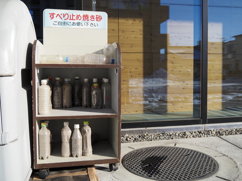 今日は役場庁舎周辺で撮影した写真です。例年、役場では滑り止め用の焼き砂を無料でお配りしています。広報12月号でもお知らせしていますが、ほかにも公民館玄関付近、保健福祉センター(あいあい21)玄関付近、公立芽室病院玄関付近に無料配布の焼き砂が設置されています。
