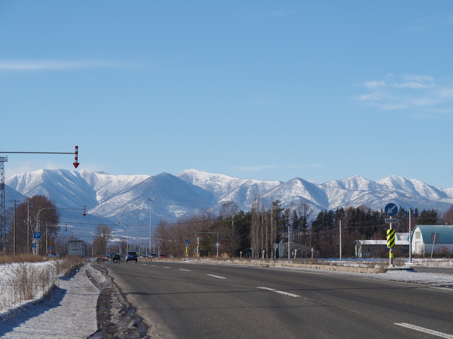 すっきりと晴れ渡り、美しい稜線がくっきり見え、日高山脈が映えています。