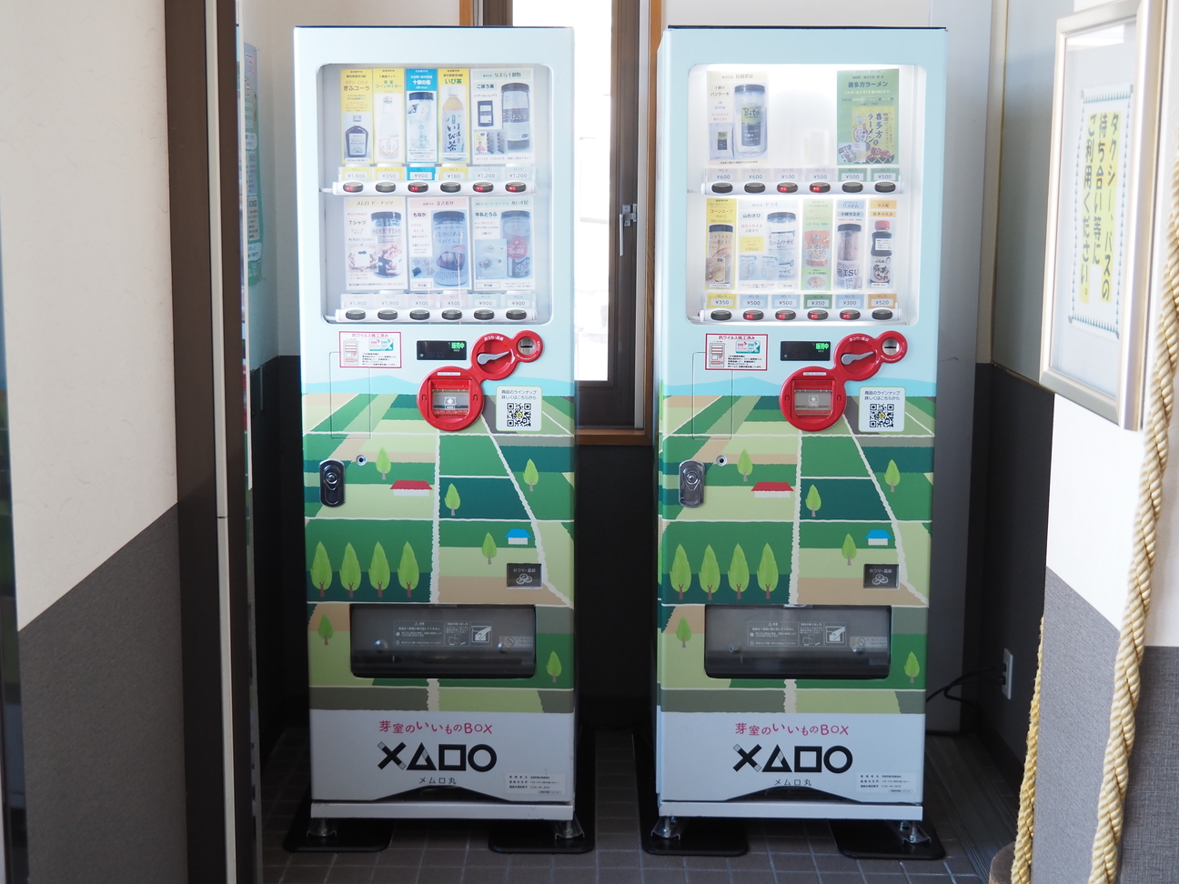 帯広信用金庫芽室支店様駐車場に設置されていた特産品専用自動販売機「芽室のいいものBOXメムロ丸(×△□〇)」が、芽室駅入口に移設されました。