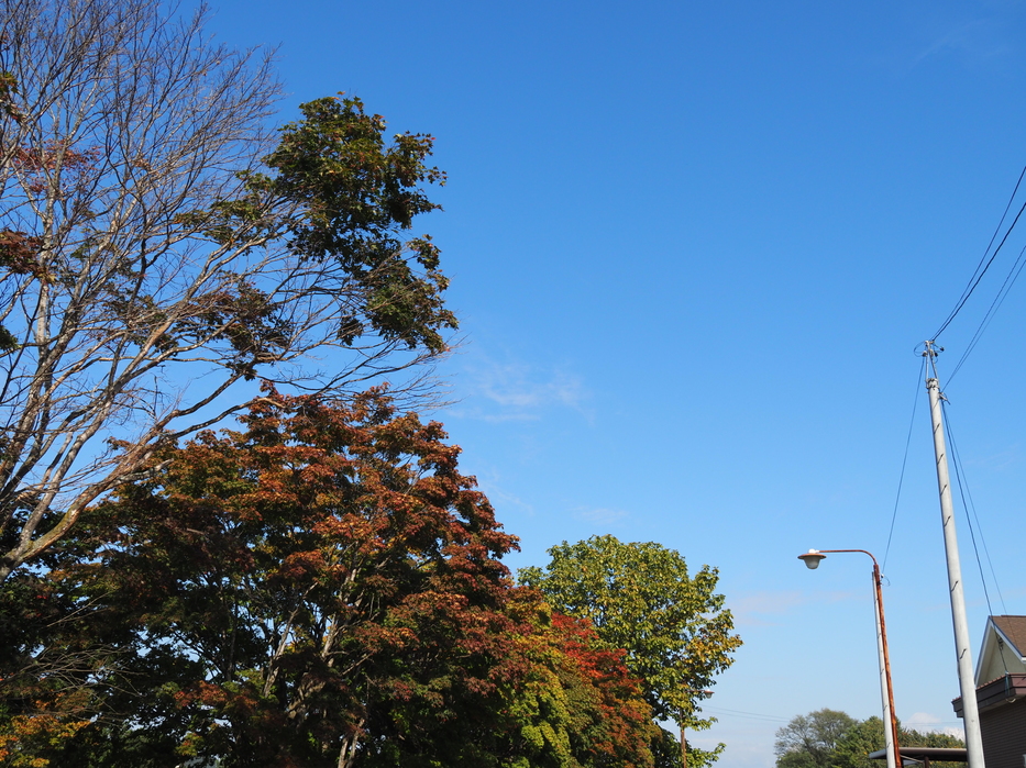 写真は、西2条3丁目で撮影したものですが、葉も色づき落ち葉も見られました。