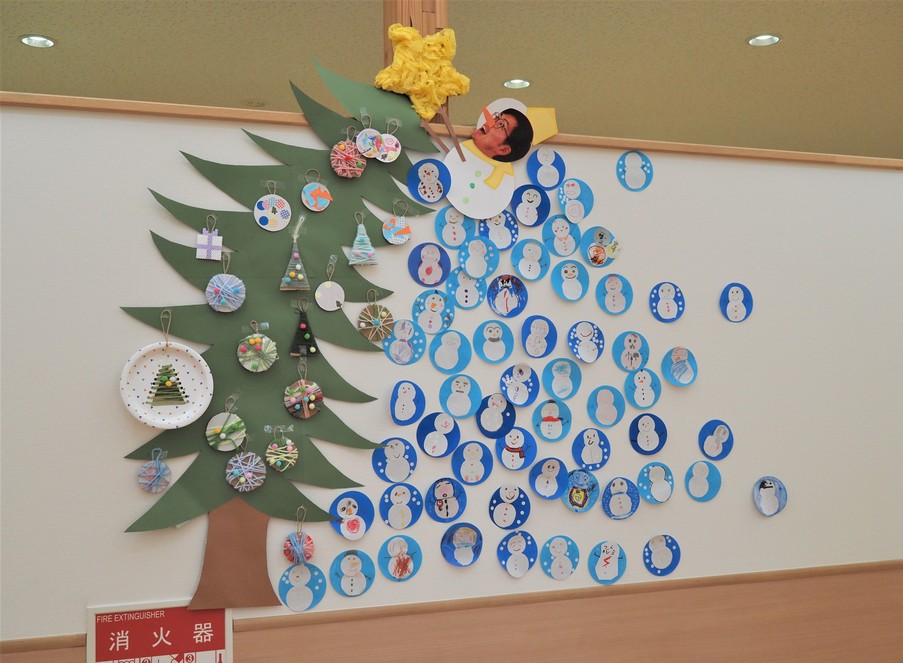 ツリー以外は全て子どもたちの手作りで、展示期間のクリスマスまでにさらに雪だるまのイラストが増えていくそうです。