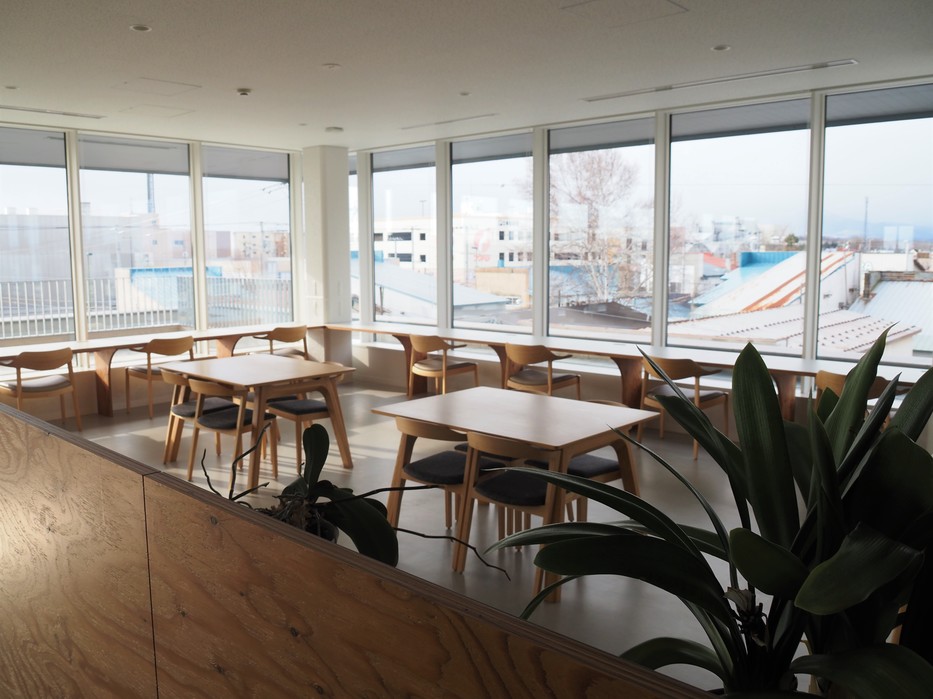 ここは、議員や職員だけではなく、勉強や仕事の打ち合わせなど、一般の方にも利用していただけるスペースとして開放しています。全面ガラス窓になっており、今日は残念ながら見えませんでしたが、天気が良ければ日高山脈が一望できます。