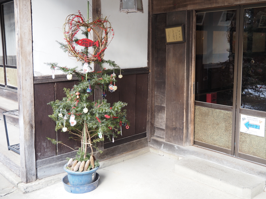 施設内にかわいいクリスマスの飾りがありました。
