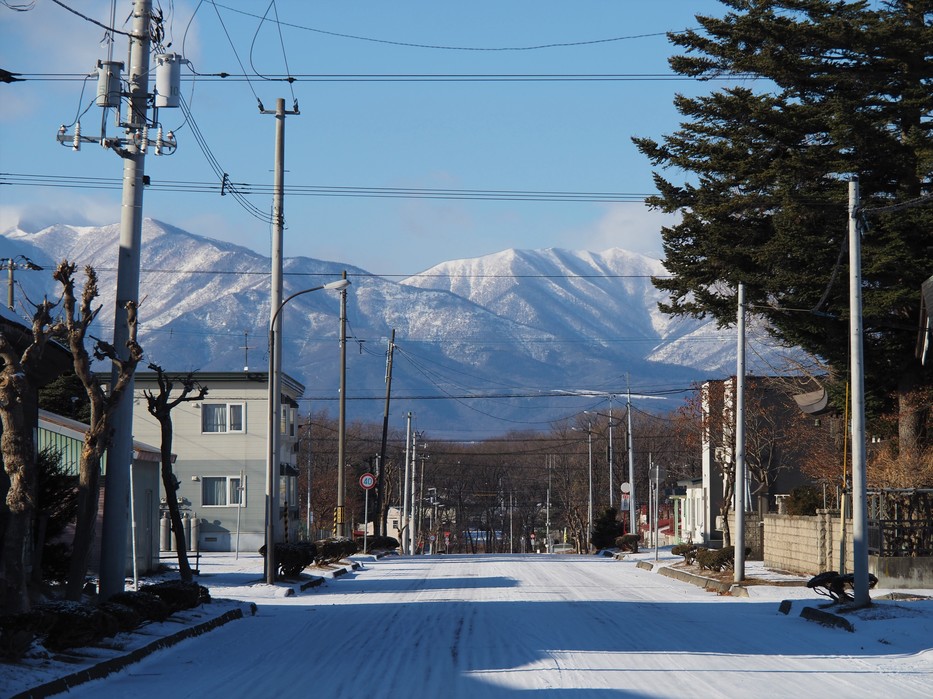 昨日に降った雪が市街地の道路にも残っています。