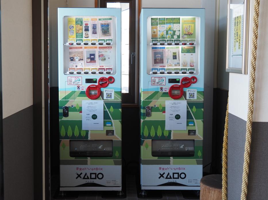 特産品専用自動販売機「芽室のいいものBOXメムロ丸(×△□〇)」が、芽室駅入口に移設されてから1年が経ちました。