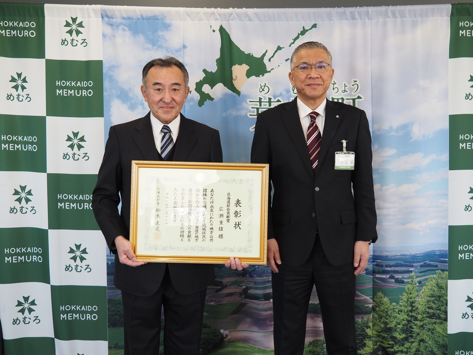 元芽室町議会議員の広瀬重雄さんが、このほど、北海道知事から多年にわたる功労に対して表彰されました。