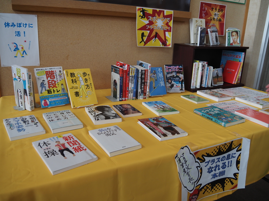 現在、図書館では、程野教育長のプラスの息になれる‼本棚が設置されています。