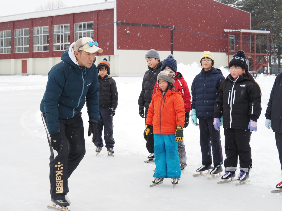本日の授業では、元スピードスケート選手でバンクーバーオリンピックにも出場した土井槙悟さんが講師となって子どもたちを指導しました。