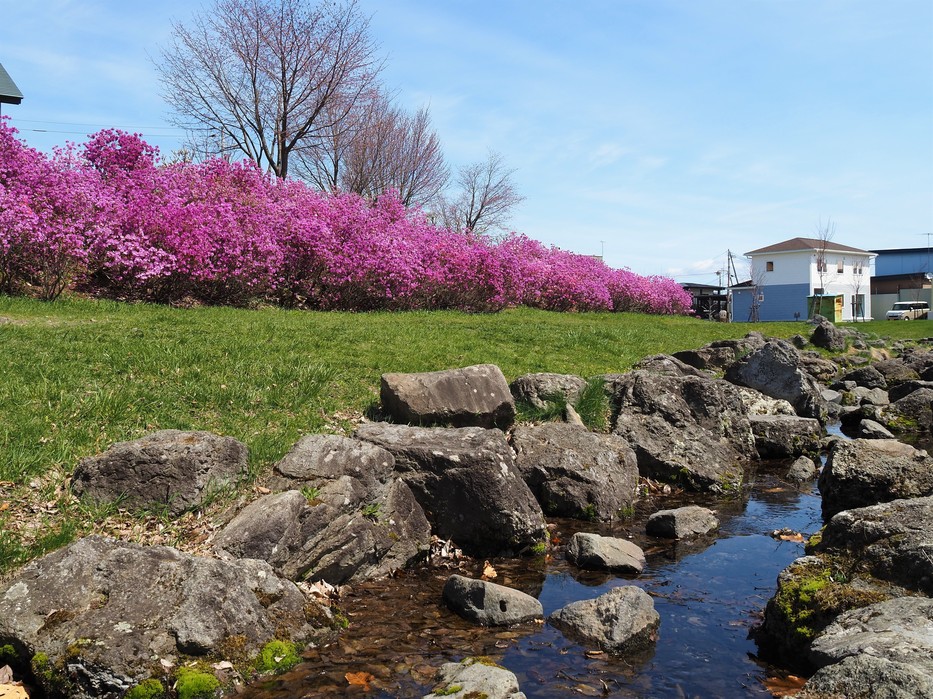 町民の方から「弥生児童公園のエゾムラサキツツジが満開」との情報提供をいただいたので、早速訪れたところ、たくさんのエゾムラサキツツジが綺麗に咲いていました。