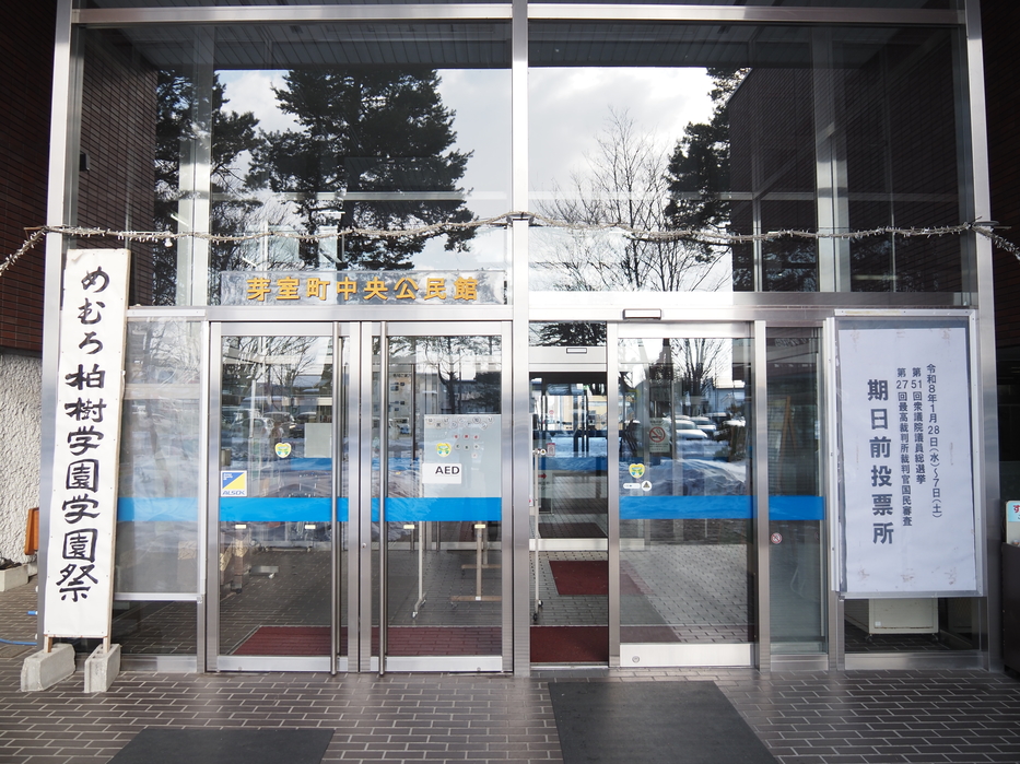 今日の芽室町中央公民館では、町内在住の65歳以上の方が学習やクラブ活動を行う高齢者学級「めむろ柏樹学園」の学園祭が開催されており、また、1階展示ホールには第51回衆議院議員総選挙及び第27回最高裁判所裁判官国民審査の期日前投票所が開設されています。