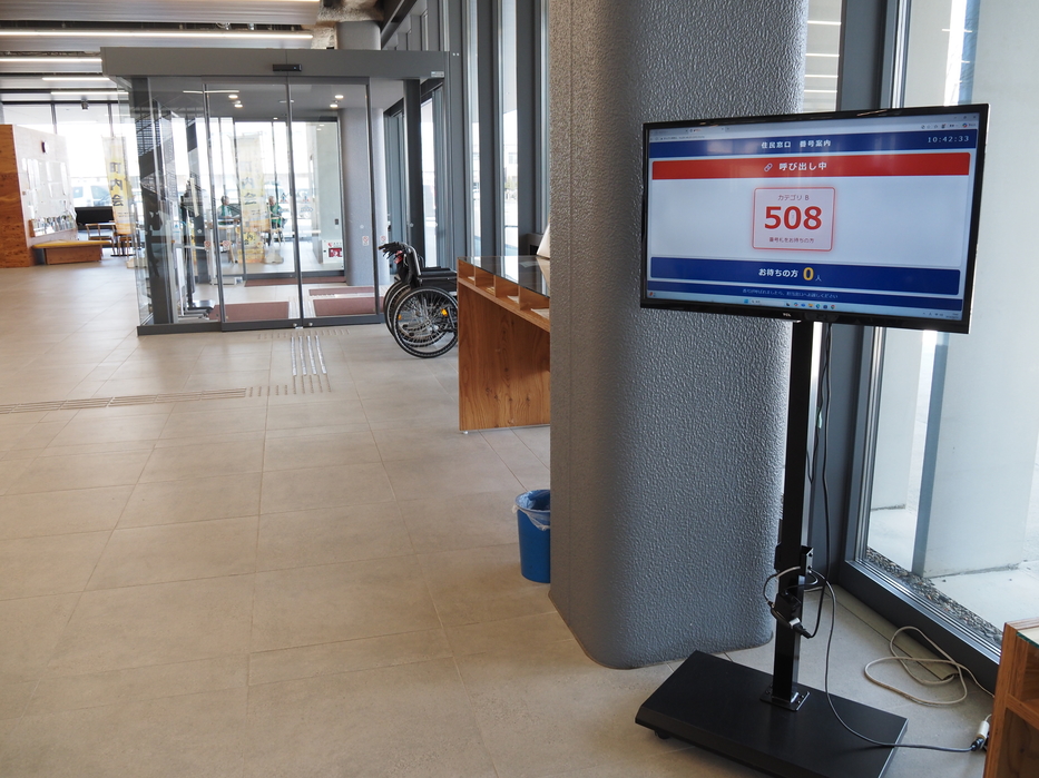 番号を呼ばれても混雑している時だとなかなか聞こえづらかったり、何かに集中していて呼び出しを聞きそびれてしまったりすることもあるかと思いますが、このモニターに呼び出し番号が表示されるので安心です。