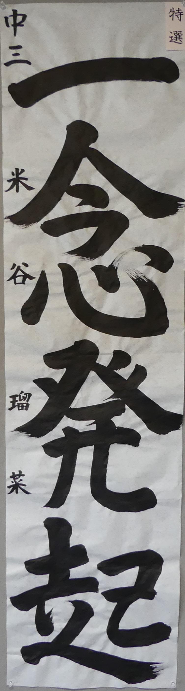 中学生 「一念発起」(1年生は楷書、2~3年生は書体自由)