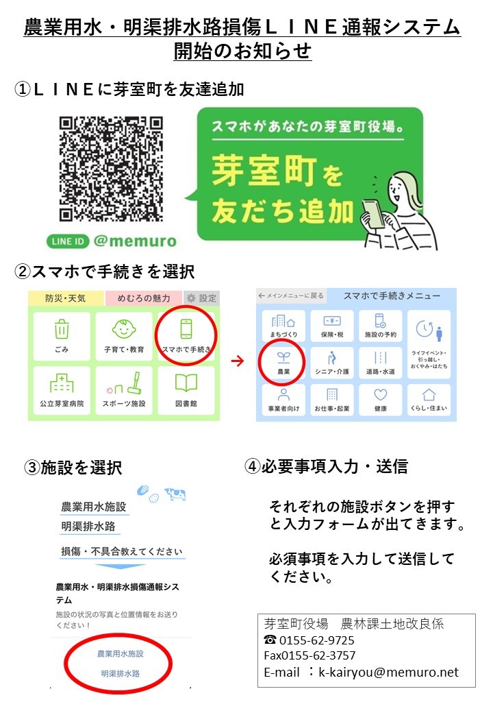 明渠排水路・農業用水施設の損傷をスマホ(LINE)で連絡できるようになりました。