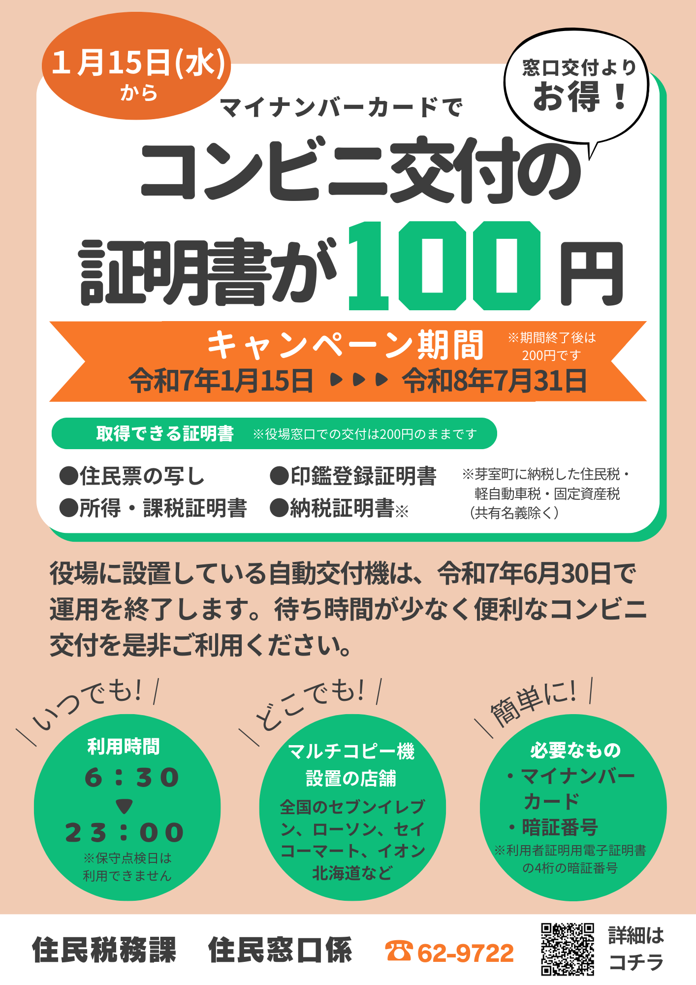 いつでも!どこでも!簡単に!安くて便利なコンビニ交付をぜひご利用ください。